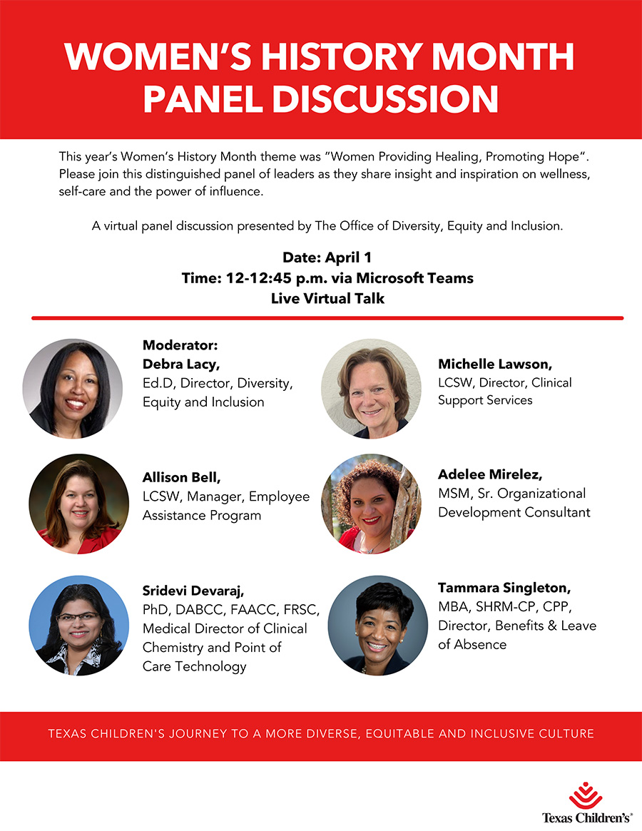 Close out Women’s History Month with new insight and fresh inspiration from women leaders at Texas Children’s and Baylor College of Medicine! Click here to register to attend.