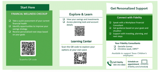Please see below for more information on the financial wellness checkup, connecting with Fidelity, and scheduling an appointment!