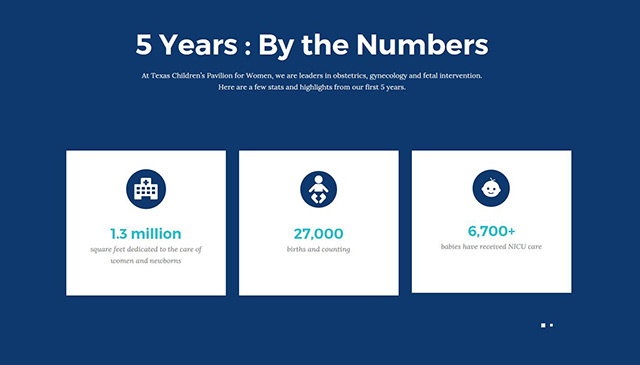 Texas Children’s Marketing team created a beautifully designed website commemorating the five-year anniversary of the opening of Texas Children’s Pavilion...