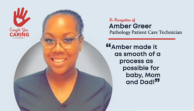 Grateful parent submitted the following Caught You Caring recognition for Pathology Patient Care Technician Amber Greer. “It was my daughter’s...