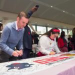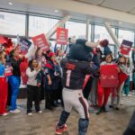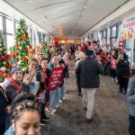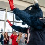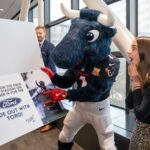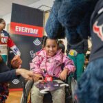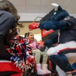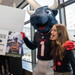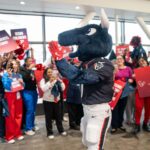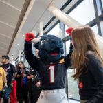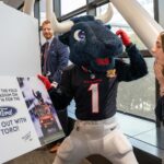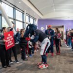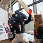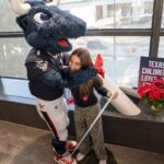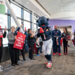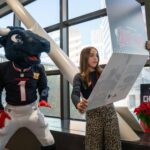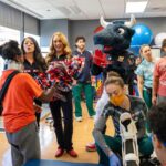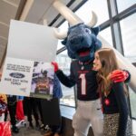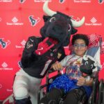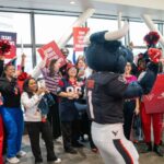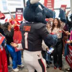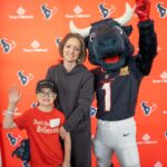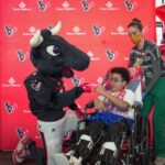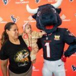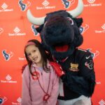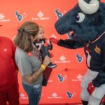 TORO paraded across the bridge walkway, surrounded by a cheerful crowd decked out in Houston Texans gear and waving eye-catching props. In addition to high-fiving enthusiastic team members, patients and families along the bridge, TORO stopped to strike fun and spirited poses.